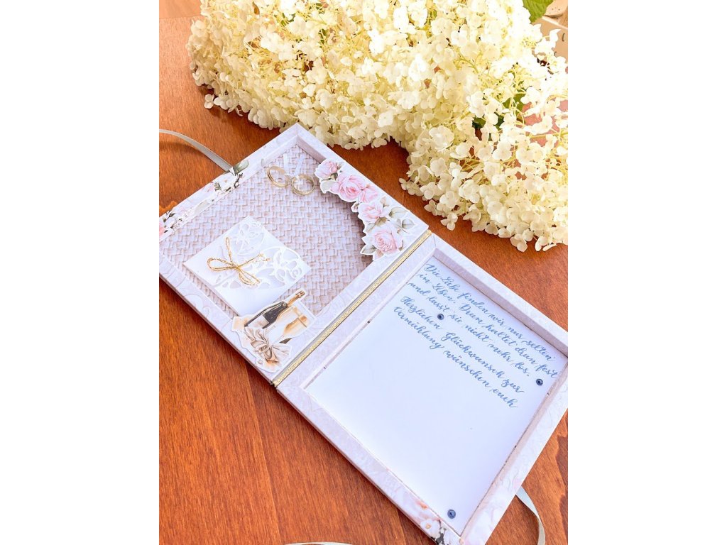 Vybrat si můžete z variant s krajkovou obálkou (pro dámy) nebo hladkou (pro pány) a dvou typů zavírání – elegantní stuha nebo praktická papírová manžeta.