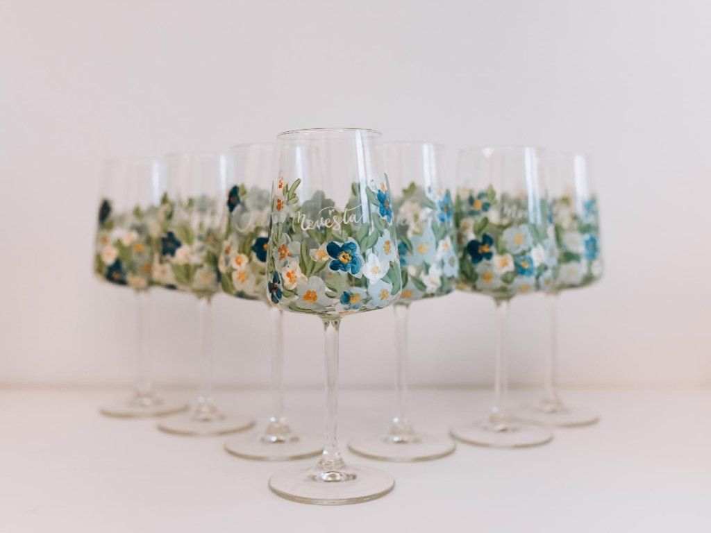 Personalizovaná svatební sklenička je ručně dekorována speciálními barvami zapékanými při vysoké teplotě. Dekor je aplikován na vnější stranu skla mimo plochu určenou pro kontakt s nápojem. Doporučujeme šetrné ruční mytí. Není vhodné do myčky. Lze doplnit o stuhu, případně zvolit popisek na skleničku, na stuhu, nebo na oboje. Popis stuhy je ruční, v odstínu zlaté nebo stříbrné, stuha saténová, odstín dle barevné palety. Jiný odstín nápisu pouze na dotaz.