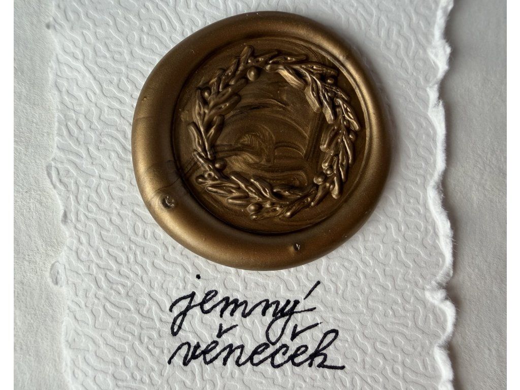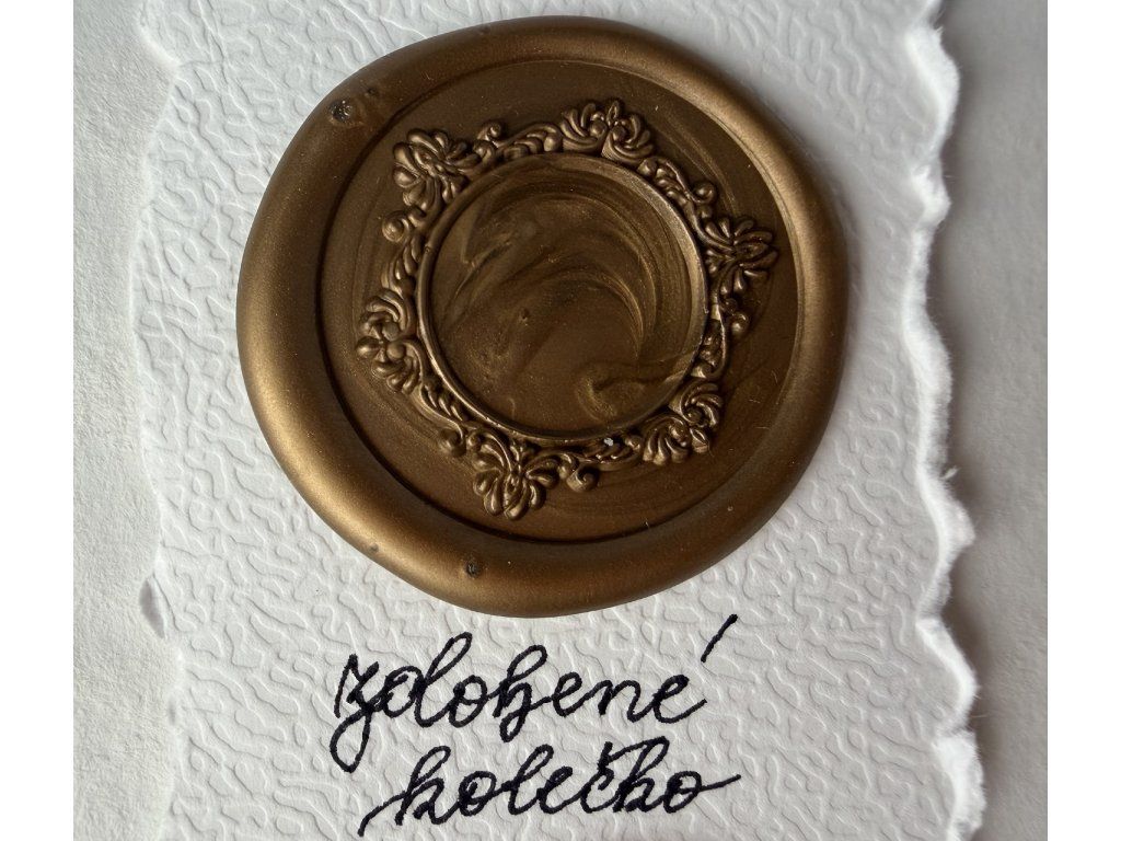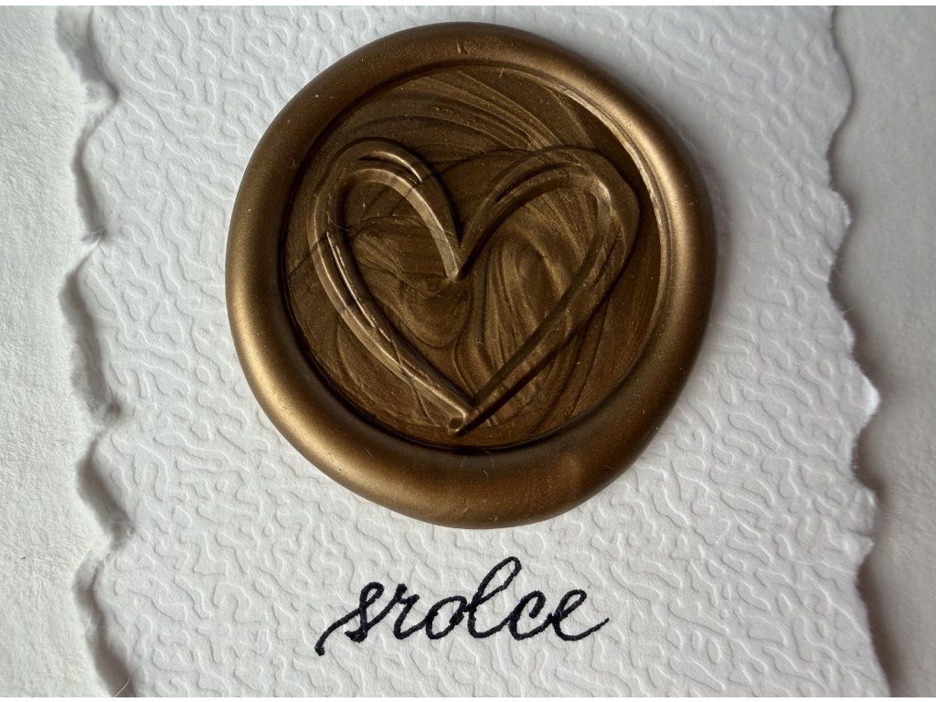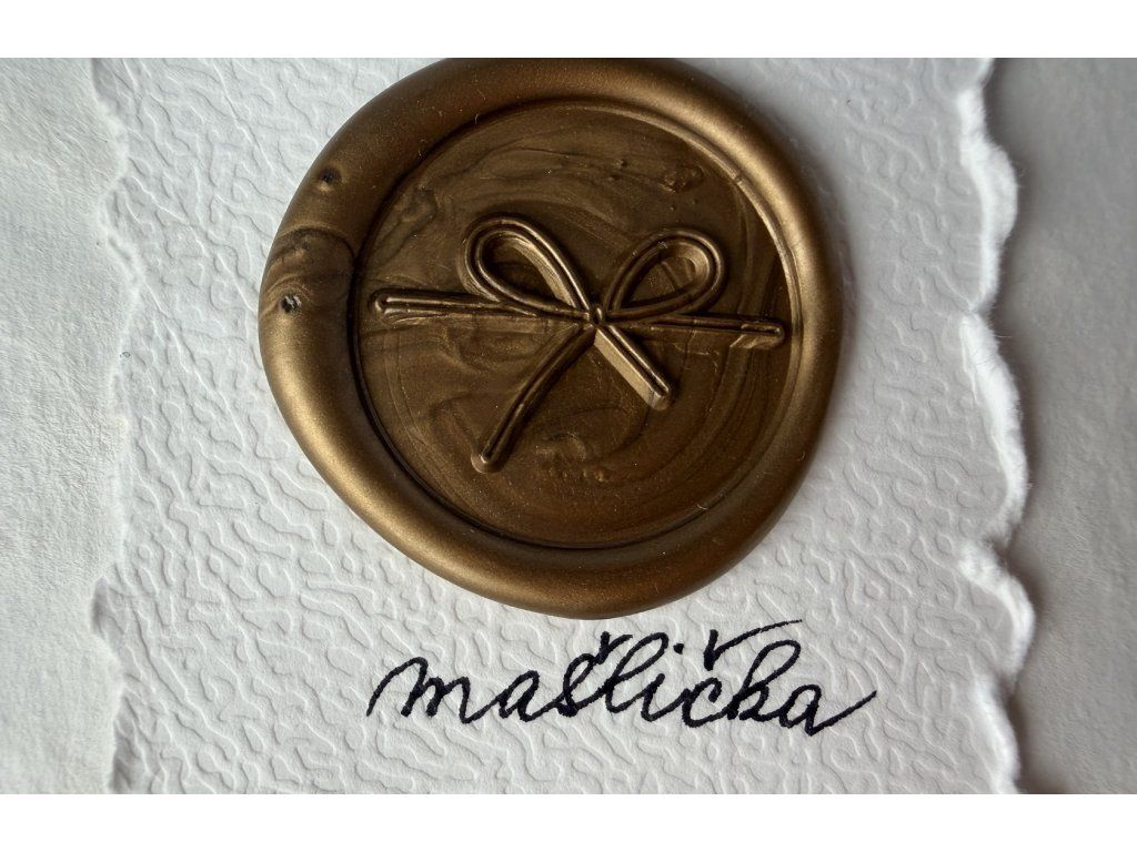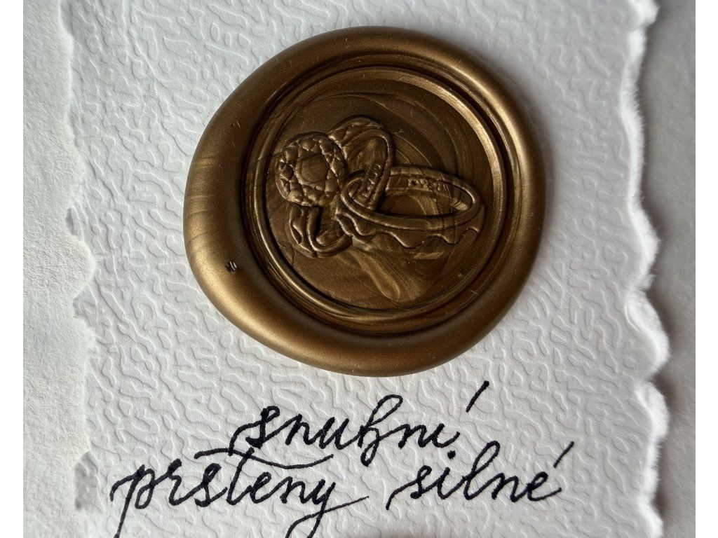 Ručně vyráběné voskové pečetě, které vhodně doladí vzhled svatebního oznámení, jmenovky, přeobalu či obálky. Na pečeti lze zvýraznit zlatě nebo stříbrně její okraj, nebo jen motiv. Pečeť lze ozvláštnit kovovou průchodkou a jí provléct stuhu, šňůrku, nebo střapec. Průměr pečeti uveden u každé samostatně?, součástí je samolepící kolečko. Vyberte si motiv a následně odstín. Pouze pod průhledný vosk lze aplikovat design tiskovin - velice efektní a jedinečné, samolepicí kolečko je součástí. Do pečeti lze zatavit sušené květiny, jako nevěstin závoj ( lze přizpůsobit i barevně ), po obvodu pečeti lze nalepit sušené květiny, či jejich barevně ladící části.