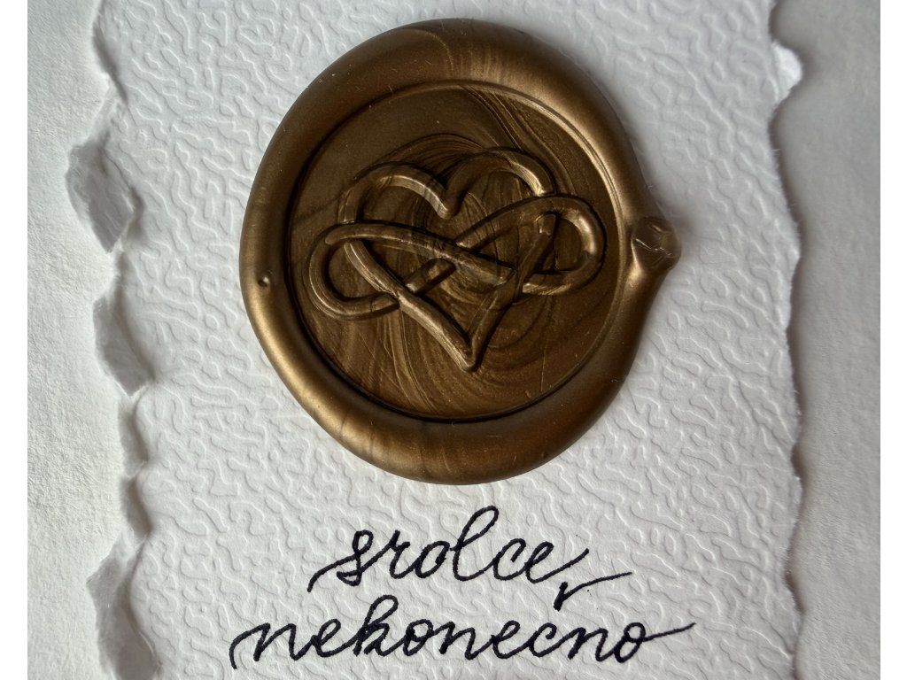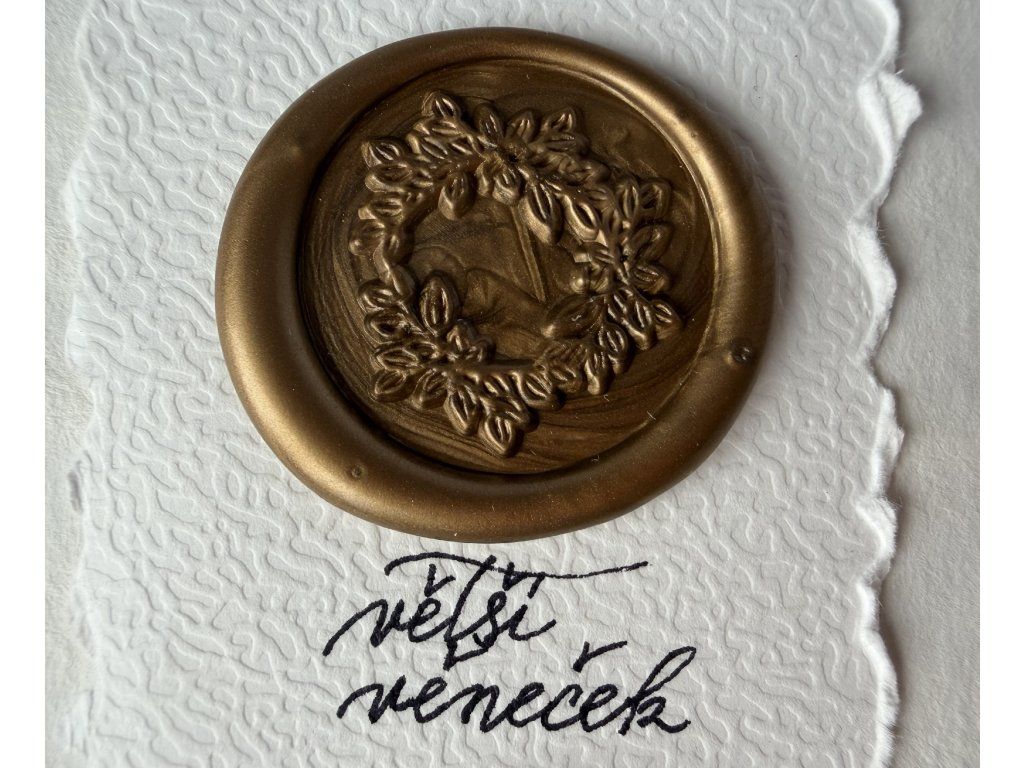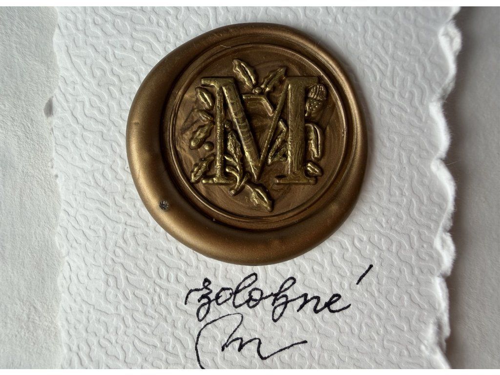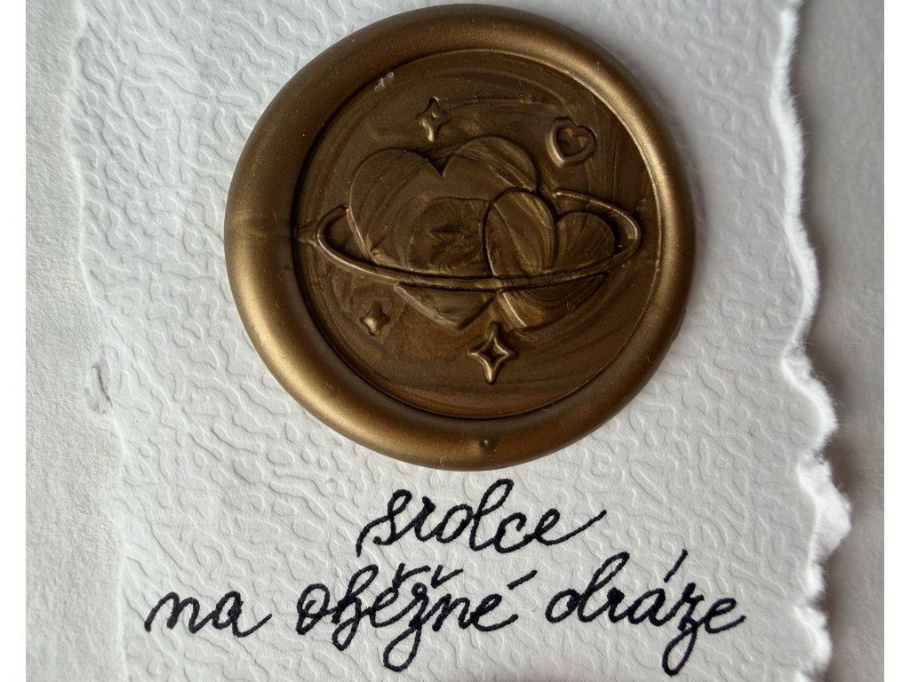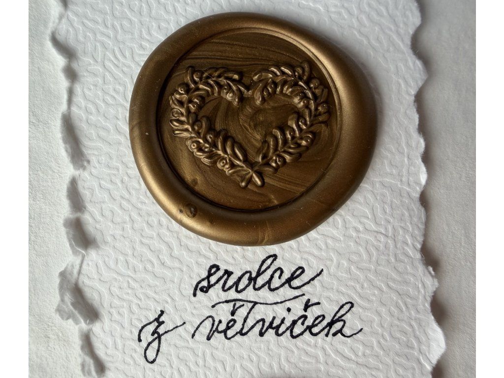 Ručně vyráběné voskové pečetě, které vhodně doladí vzhled svatebního oznámení, jmenovky, přeobalu či obálky. Na pečeti lze zvýraznit zlatě nebo stříbrně její okraj, nebo jen motiv. Pečeť lze ozvláštnit kovovou průchodkou a jí provléct stuhu, šňůrku, nebo střapec. Průměr pečeti uveden u každé samostatně?, součástí je samolepící kolečko. Vyberte si motiv a následně odstín. Pouze pod průhledný vosk lze aplikovat design tiskovin - velice efektní a jedinečné, samolepicí kolečko je součástí. Do pečeti lze zatavit sušené květiny, jako nevěstin závoj ( lze přizpůsobit i barevně ), po obvodu pečeti lze nalepit sušené květiny, či jejich barevně ladící části.
